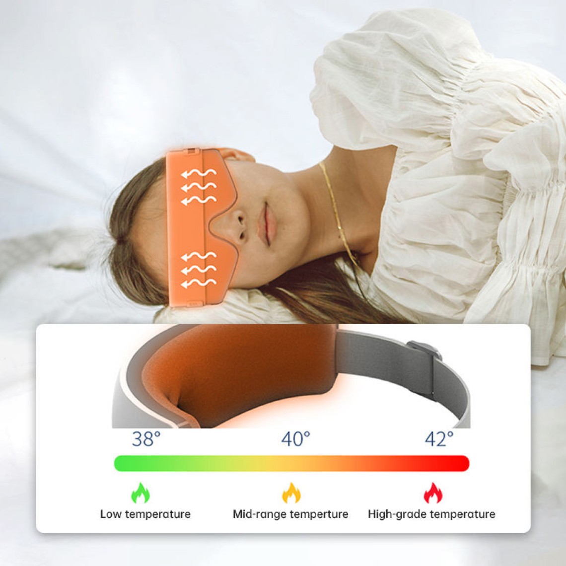 This eye massager is specifically designed to relieve eye fatigue and discomfort, combining air pressure massage, warm compress, and gentle vibration functions. It also supports voice control for easy operation. Its foldable design ensures portability and easy storage, weighing a mere 289 grams for daily use or travel. Powered by an 850mAh battery with 3.7V operating voltage and 5W rated power, it delivers extended care sessions. Multiple massage modes intelligently adjust pressure and heat intensity to boost eye circulation, relieve tension and fatigue, and enhance overall comfort.Relief AreasEyes and Periorbital Muscles: Alleviates soreness and fatigue from excessive eye strainBrow Bones and Temples: Eases mild headaches and ocular pressureEyelids and Orbital Areas: Promotes blood circulation to reduce puffiness and dark circlesEntire Eye Region: Delivers comprehensive eye care and comfort through a combination of air pressure, heat therapy, and vibration