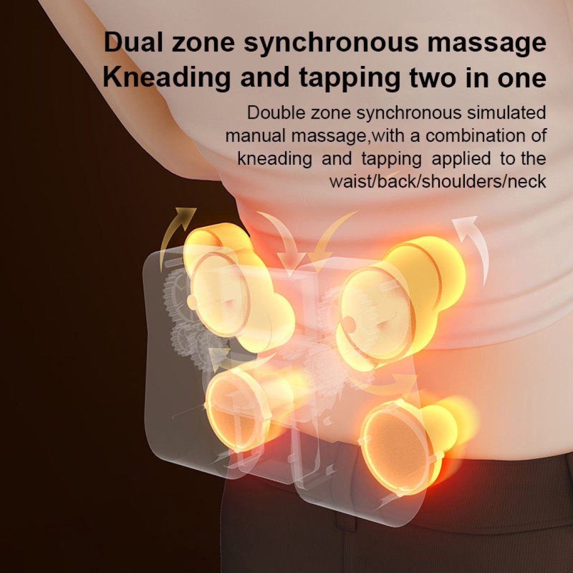 This massage cushion is designed for both office and home use, combining kneading, rolling, heating, and vibration functions to deliver a comprehensive soothing experience for the neck and back. Equipped with over 6 massage heads and supporting three intensity levels, it offers adjustable massage effects from gentle relaxation to deep kneading, effectively relieving muscle tension and soreness caused by prolonged sitting or work stress.Relief AreasNeck: Alleviates stiffness and soreness in the cervical spine while improving blood circulation.Back: Relaxes the shoulder blades and upper back muscles, reducing pressure from prolonged sitting.Shoulders: Eases shoulder tension and fatigue, promoting overall comfort.
