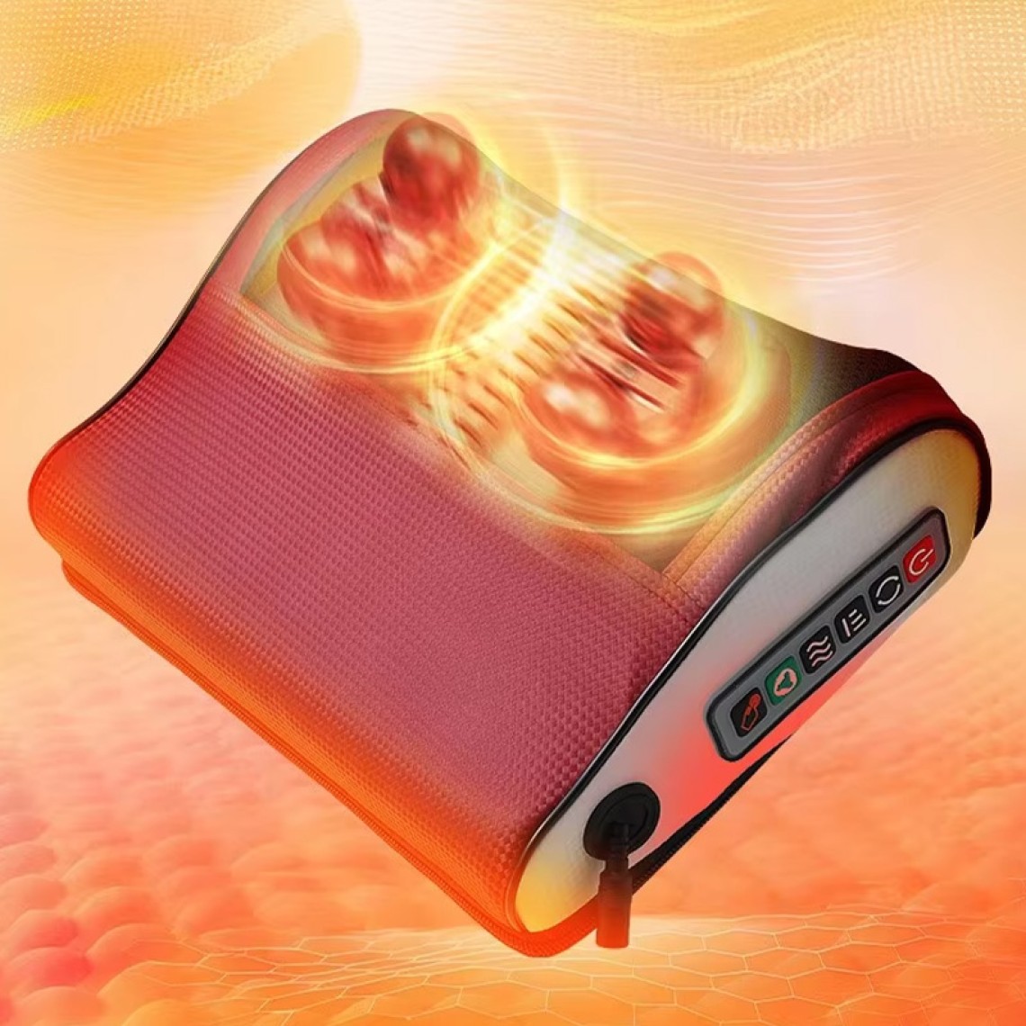This massage pillow combines kneading, heat therapy, and support into one ergonomic curved design that closely conforms to the contours of your neck and waist, delivering a comprehensive relaxation experience for your body. High-efficiency acupressure massage heads mimic manual kneading techniques to penetrate deep muscle layers and release accumulated fatigue. Built-in constant-temperature heating delivers gentle warmth that promotes blood circulation while soothing muscle stiffness and tension. Its lightweight, portable design lets you enjoy professional-grade comfort anytime—whether at the office, home, or in your car.Relief AreasNeck: Effectively relaxes muscles surrounding the cervical spine, alleviating soreness and stiffness caused by prolonged sitting or looking down.Shoulders: Relieves shoulder pressure, improving discomfort in the shoulders and neck caused by tension or fatigue.Lower Back: Provides support and heat therapy to relieve lower back soreness, stiffness from prolonged sitting, and muscle fatigue.